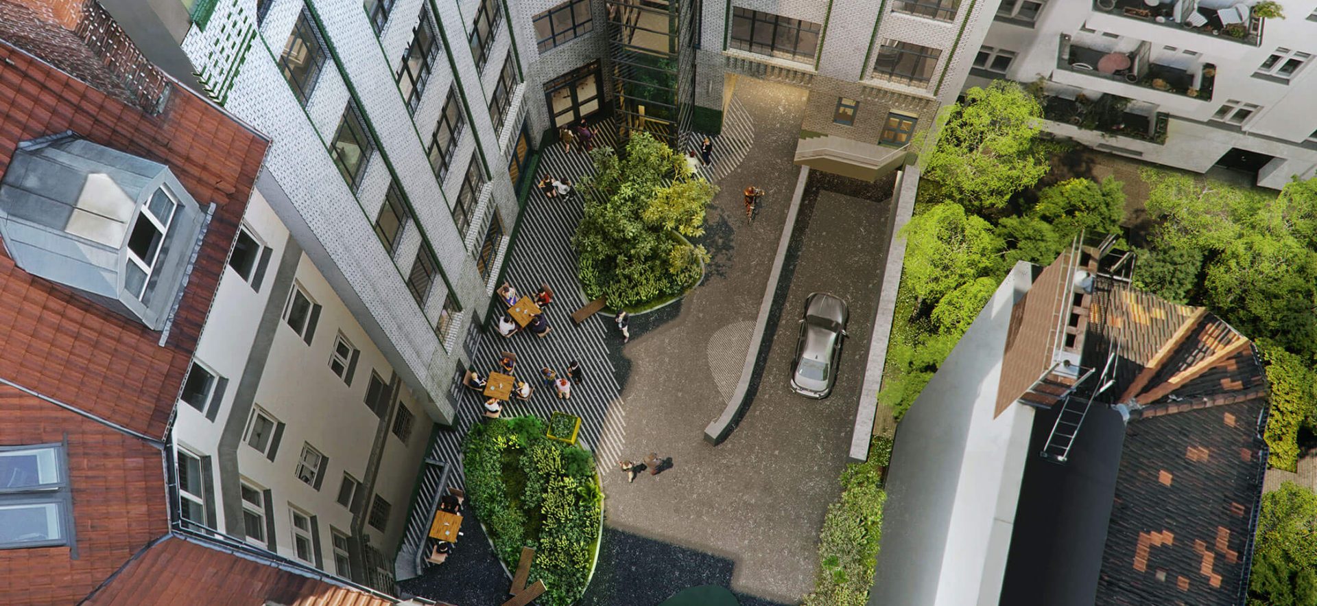 The first courtyard is the entrance to LOFT and is therefore open to the public. A nice café or restaurant is also planned here.
